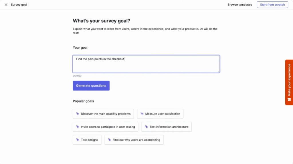 Hotjar’s testing capability lets you collect behavioral and feedback data across segments.