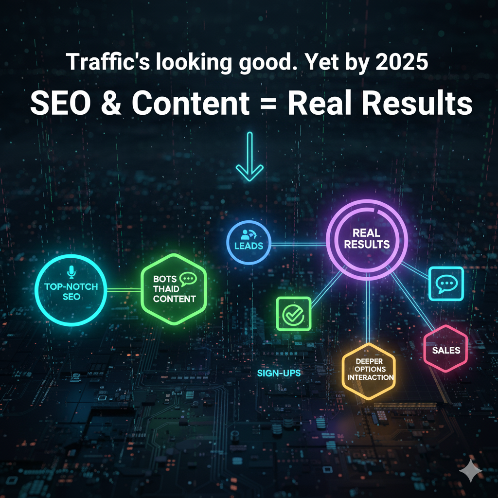 Traffic’s looking good. Yet by 2025, top-notch SEO mixed with solid content actually links to real results – think leads, sign-ups, deeper interaction, sales.
